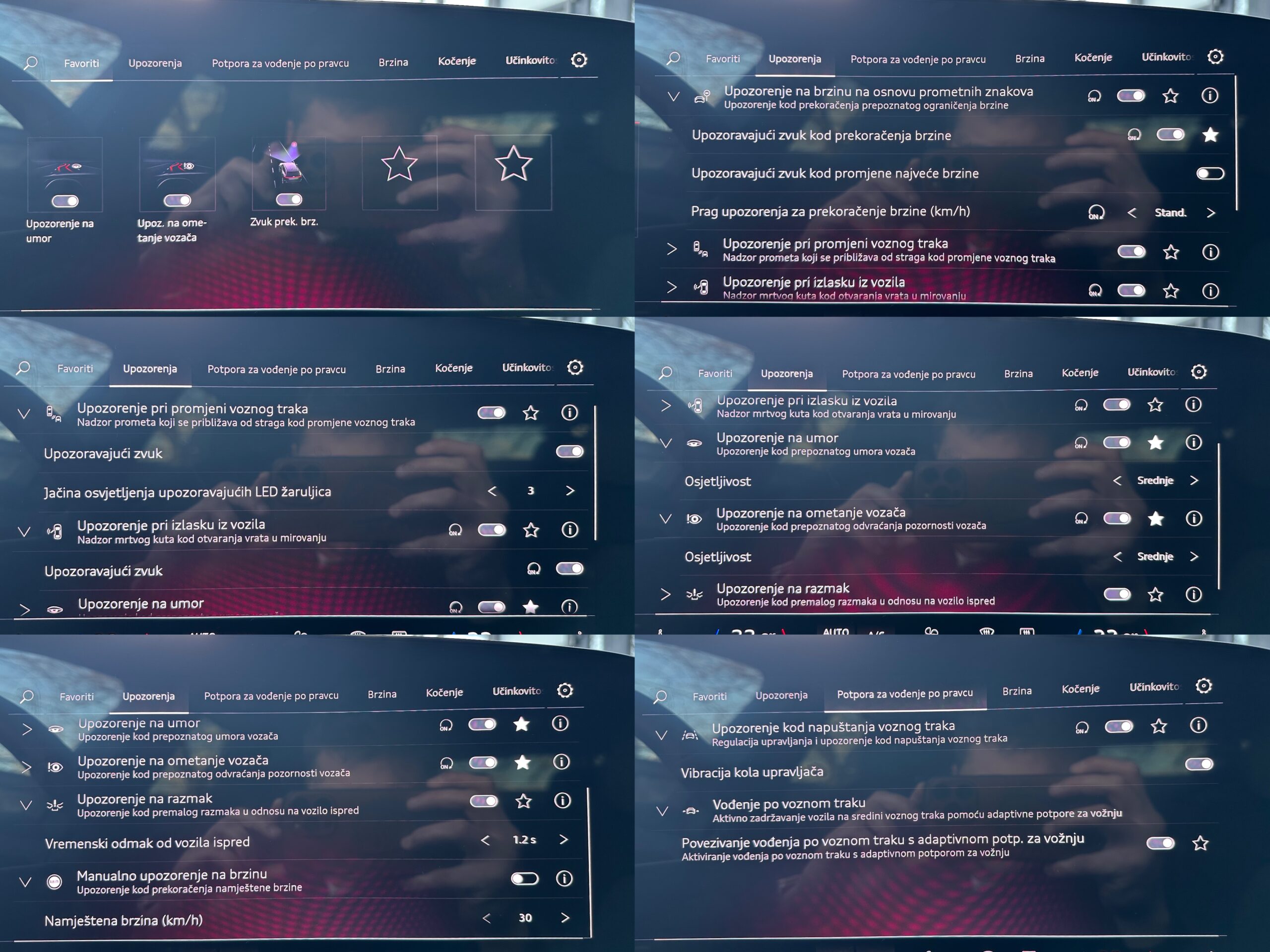 Upozorenje na promjenu vozne trake i izlazak, upozorenje na poprečni promet iza vozila i pomoć pri skretanju iza vozila***